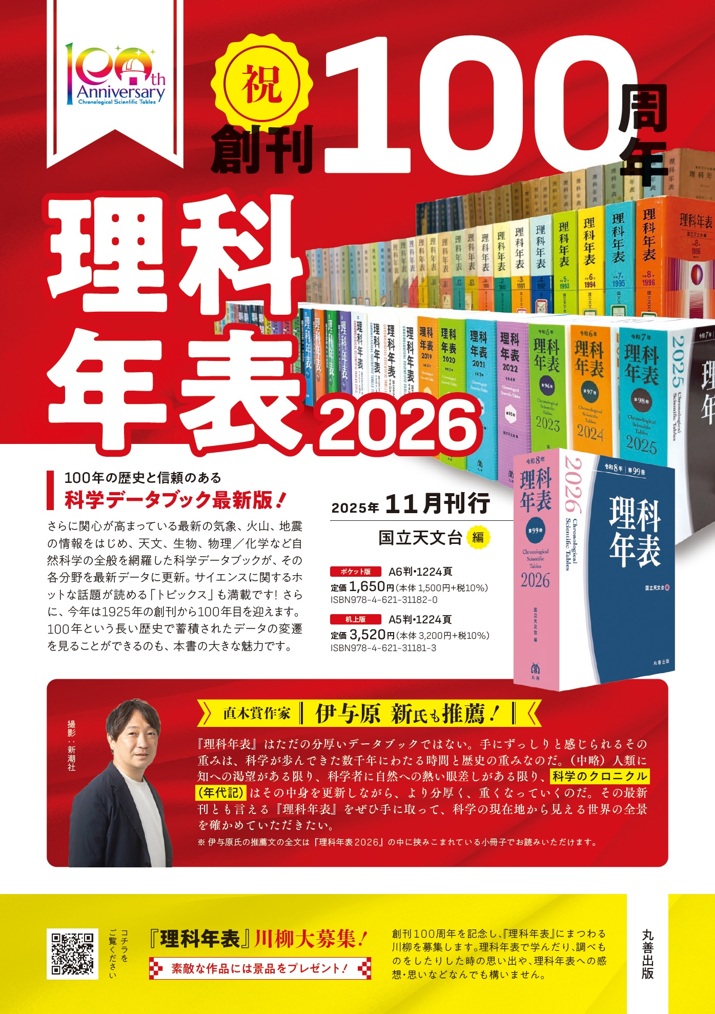 ★『理科年表2026』の帯には、作家の伊与原新氏の推薦文の一部が掲載されており、推薦文の全文は、『理科年表2026』の中に挟み込まれている小冊子パンフレットでお読みいただけます。