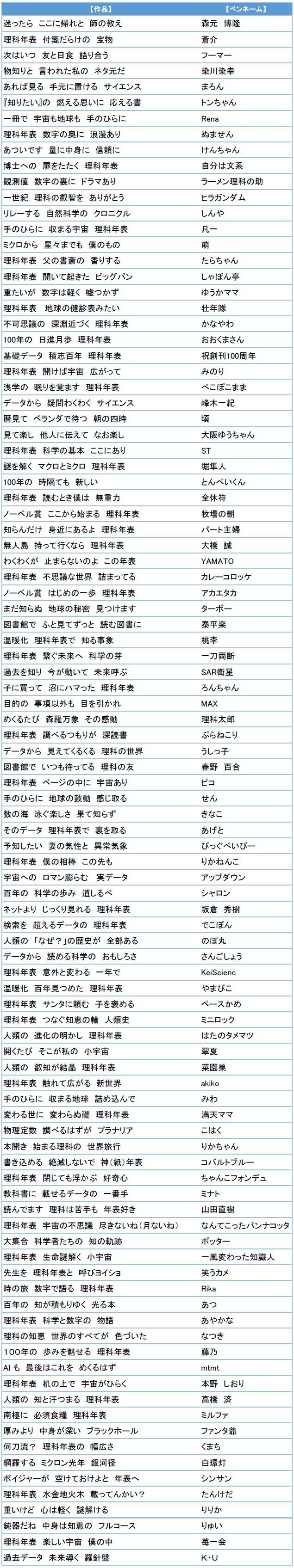 『理科年表』川柳 入賞作品発表